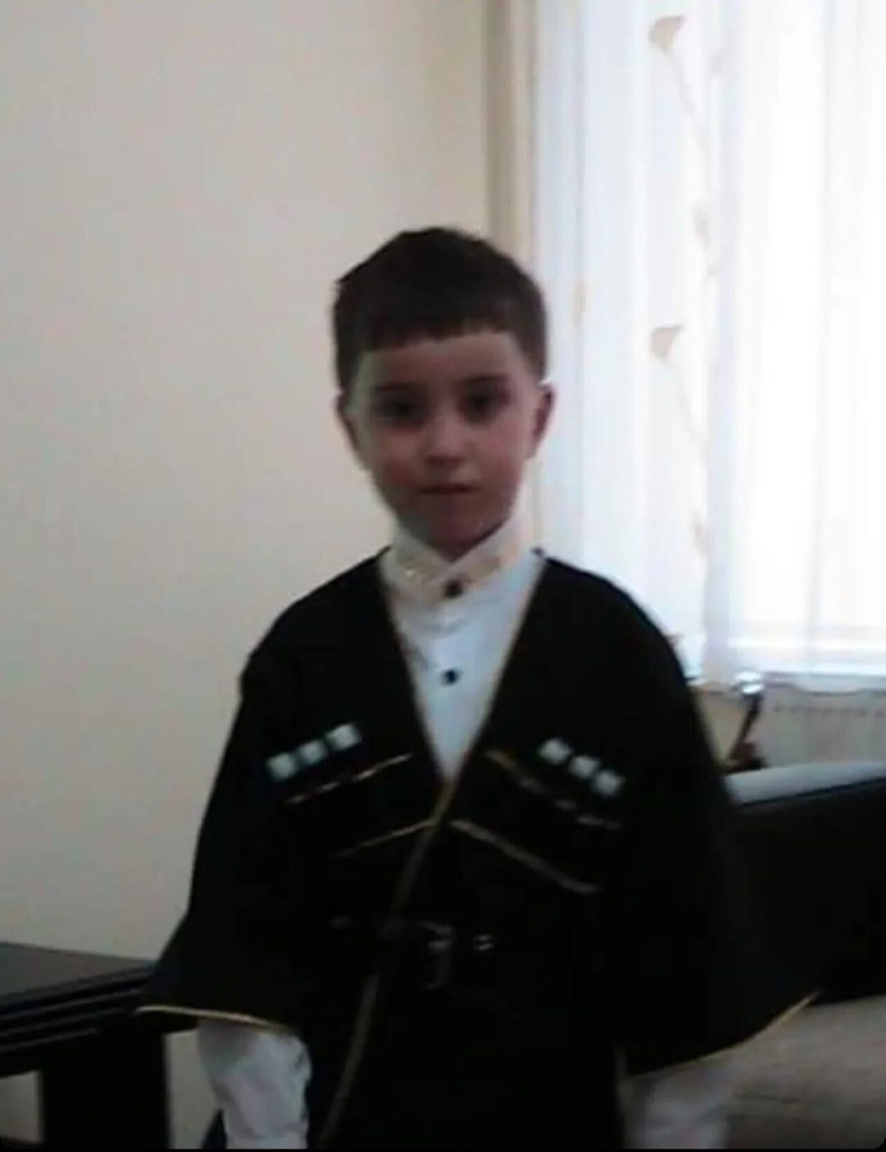 The cherkeska is traditionally made from dark wool or felt, though ceremonial versions use finer fabrics. The color typically reflects social context: black and dark gray for daily wear, white or lighter colors for celebrations and formal occasions. The coat is worn with a kinjal (kinzhal) dagger at the waist, a narrow leather belt, and tall leather boots. The overall silhouette is slim, tall, and military in bearing, reflecting the Circassian warrior tradition and Kabardian aristocratic aesthetics.